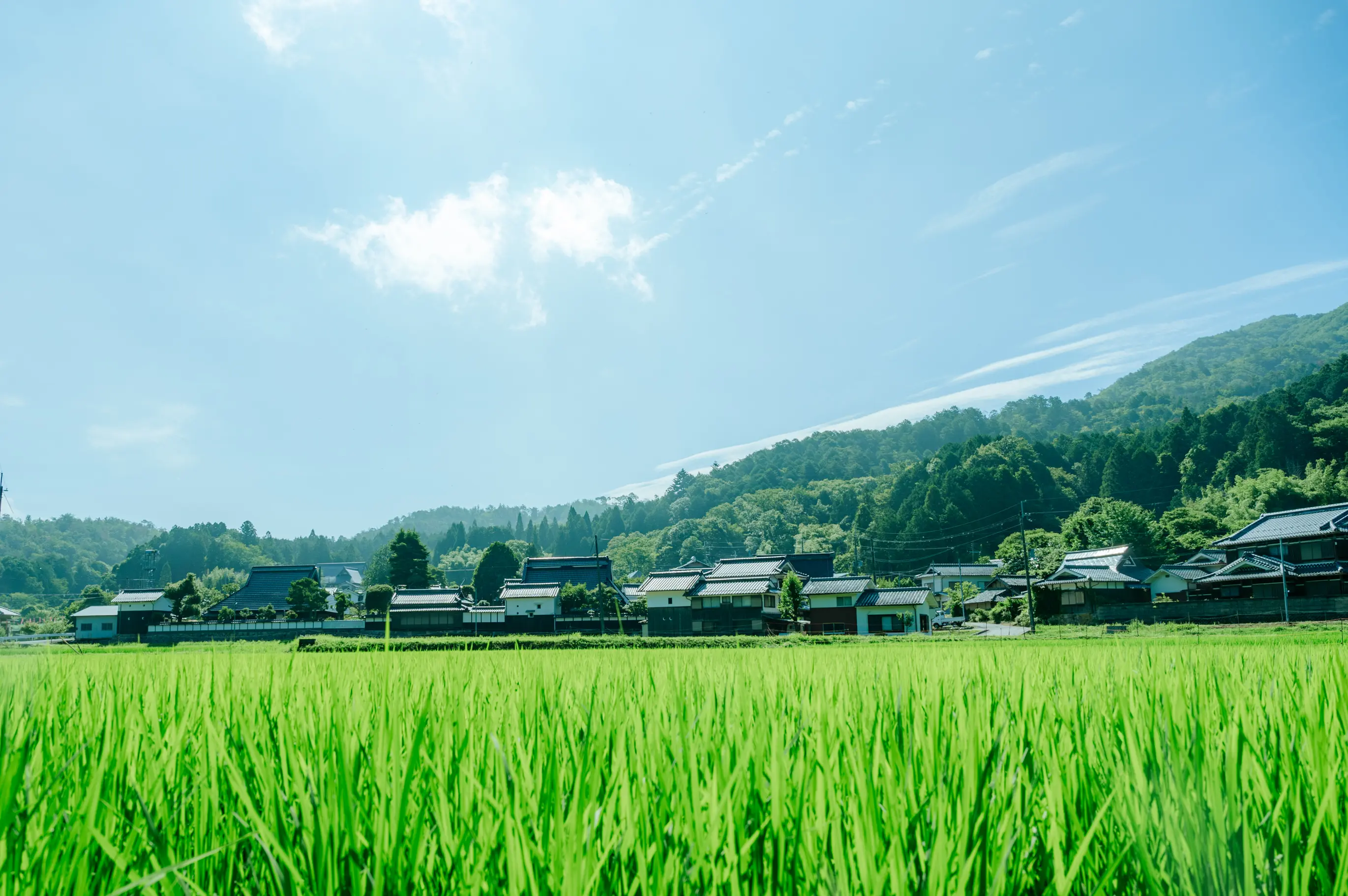 田んぼと畑がひろがる小さな集落です。